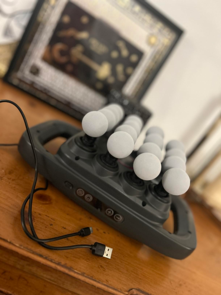 AMAZING!! This deep tissue percussion massager is incredible! There are so many good things to say about it. Right out of the box I was impressed with its size. Each of the 16 heads are large enough to work well on their own, but this holds 16 of them! The whole apparatus is large enough for me to hold comfortably and massage my own lower back. As recommended, I plugged it in and charged it before using. The battery life on this is phenomenal. All 6 of us in the household used it several times over the next few weeks without needing to recharge. Then after sitting unused for about 2 months, I picked it back up and it had just as much power. The settings are wonderful. I prefer the first setting which is a constant drumming. And level 20 (out of 30) is my preference. I wish it would adjust when holding the '+' or '-' down. This massager works great, is high quality and I highly recommend it.